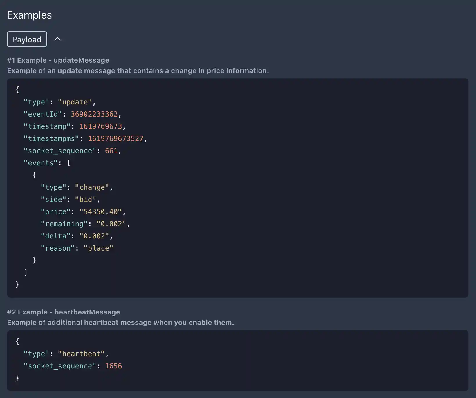 The initial response message will show the existing state of the order book. Subsequent messages will show all executed trades, as well as all other changes to the order book from orders placed or canceled.